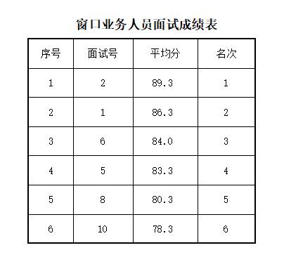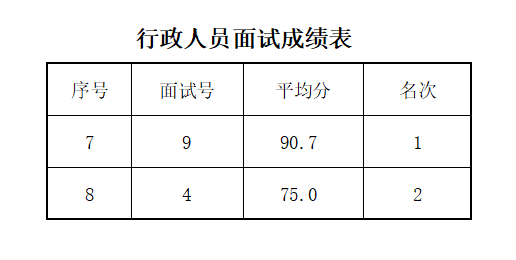 山東岱東人力資源管理有限公司項(xiàng)目外包服務(wù)人員公開招聘面試工作已結(jié)束,依據(jù)《山東岱東人力資源管理有限公司項(xiàng)目外包服務(wù)人員招聘公告》,經(jīng)過嚴(yán)格的面試評估,現(xiàn)對本次行政人員、窗口業(yè)務(wù)人員公開招聘崗位應(yīng)聘者面試成績予以公示。